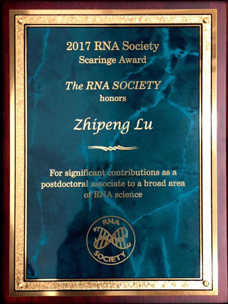 2017-02. Received the RNA Society Scaringe Award. Thank you for the recognition!